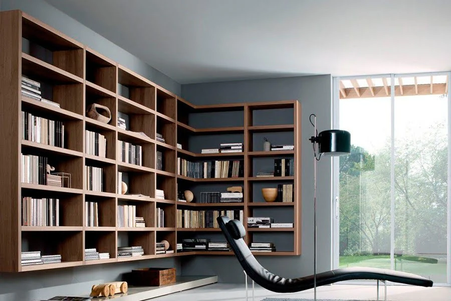 Köşe kitaplık ahşap kaplamalı veya lamine yüzeyli malzemeden üretilmektedir ister düz renk isterseniz desenli renkler tercih edilebilir. 25 mm kalınlığındaki MDF/Lamine malzeme sayesinde dayanıklı ve şık bir görünüme sahip olmaktadır.