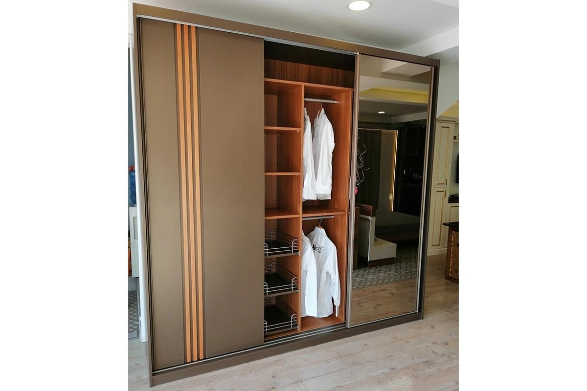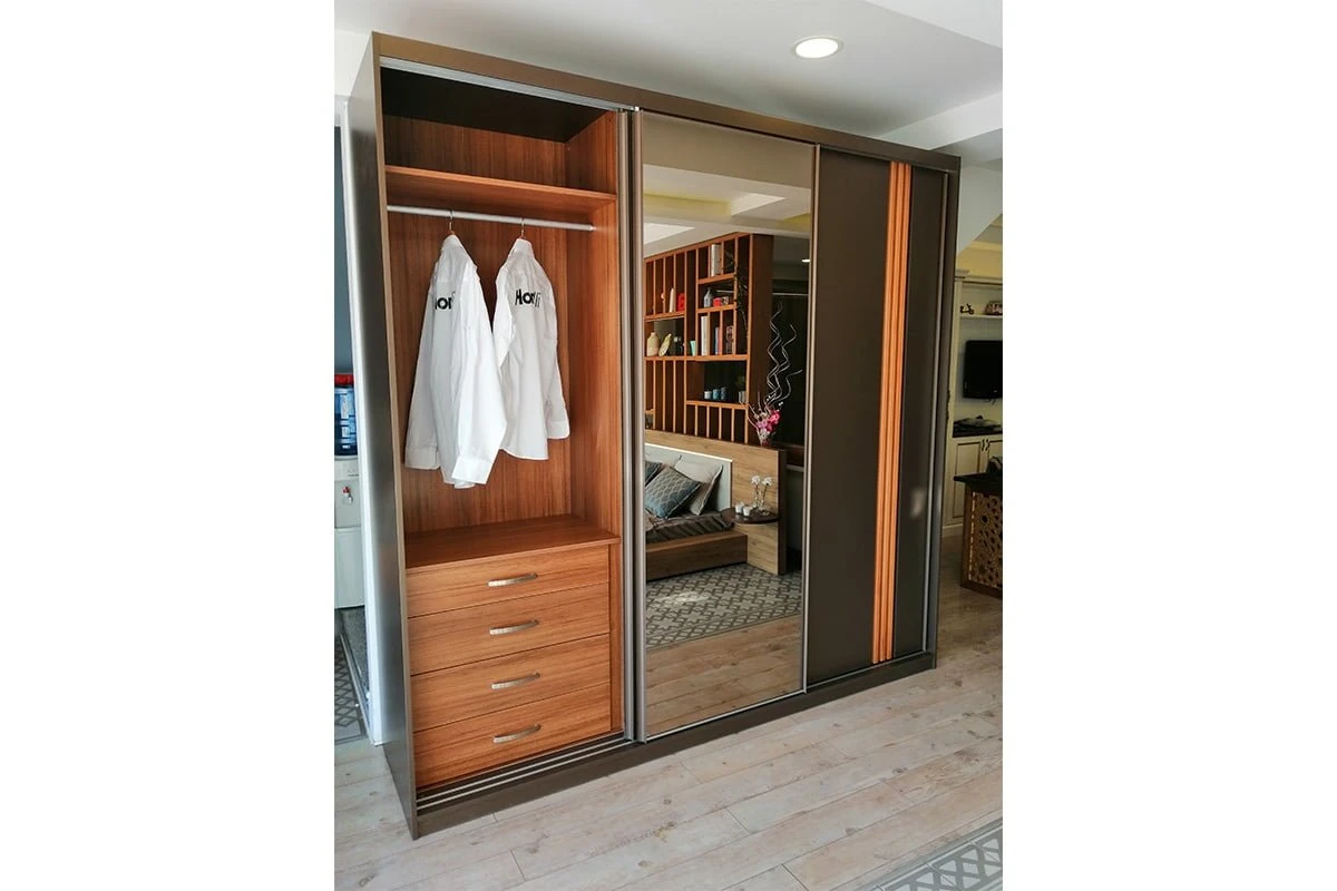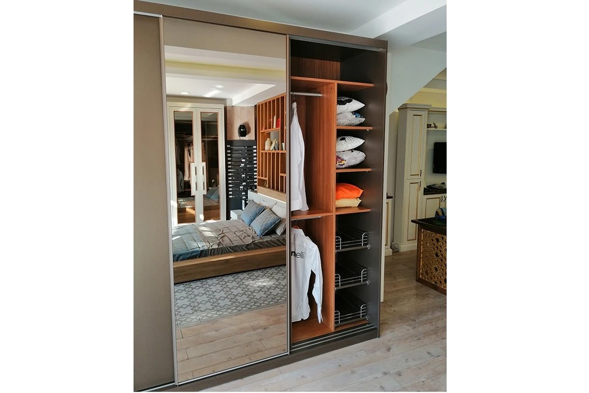 Soru: Dolabın iç raf ve askı düzenini ben tasarlayabilir miyim? Cevap: Evet. Sipariş sürecinde, içeride kaç adet raf, kaç adet frenli Hettich çekmece veya ne kadar uzunlukta askı alanına ihtiyacınız olduğunu siz belirlersiniz. İç dizayn, günlük gardırop kullanımınıza göre özel olarak şekillendirilir.