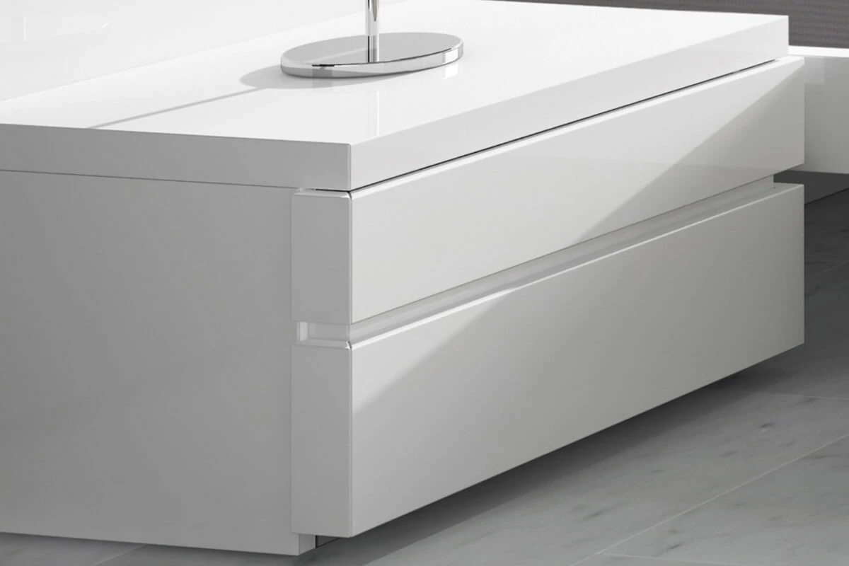 Parlak beyaz yüzey, mekânda hafiflik ve ferahlık hissi yaratır. Model ailesi yalın hatlarla yapılandırılmış olup, minimal ve modern projelerde temiz bir görsel akış sağlar. Farklı gövde detaylarıyla alternatif form seçenekleri sunar.